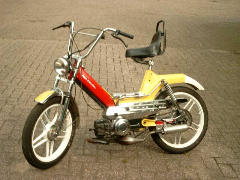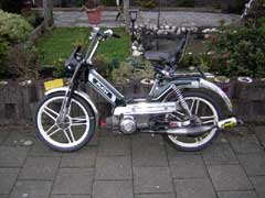 in de koplamp, kickstarter,slick achterband , witte velgen, Chromen kappen,
